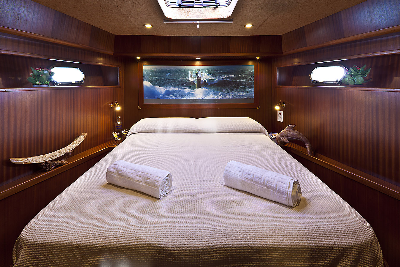 Launched in 2010 Motorsailer Myosotis is a 20 meter sailing boat made of steel with teak trim, built by Sogim Yacht with design by Lenci Design. The interior is divided into three double cabins for guests, the suite in the bow, a VIP cabin and one with bunk beds and cabin crew.