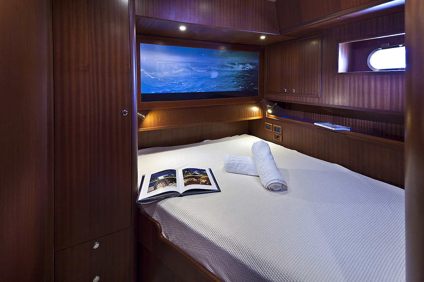 Launched in 2010 Motorsailer Myosotis is a 20 meter sailing boat made of steel with teak trim, built by Sogim Yacht with design by Lenci Design. The interior is divided into three double cabins for guests, the suite in the bow, a VIP cabin and one with bunk beds and cabin crew.