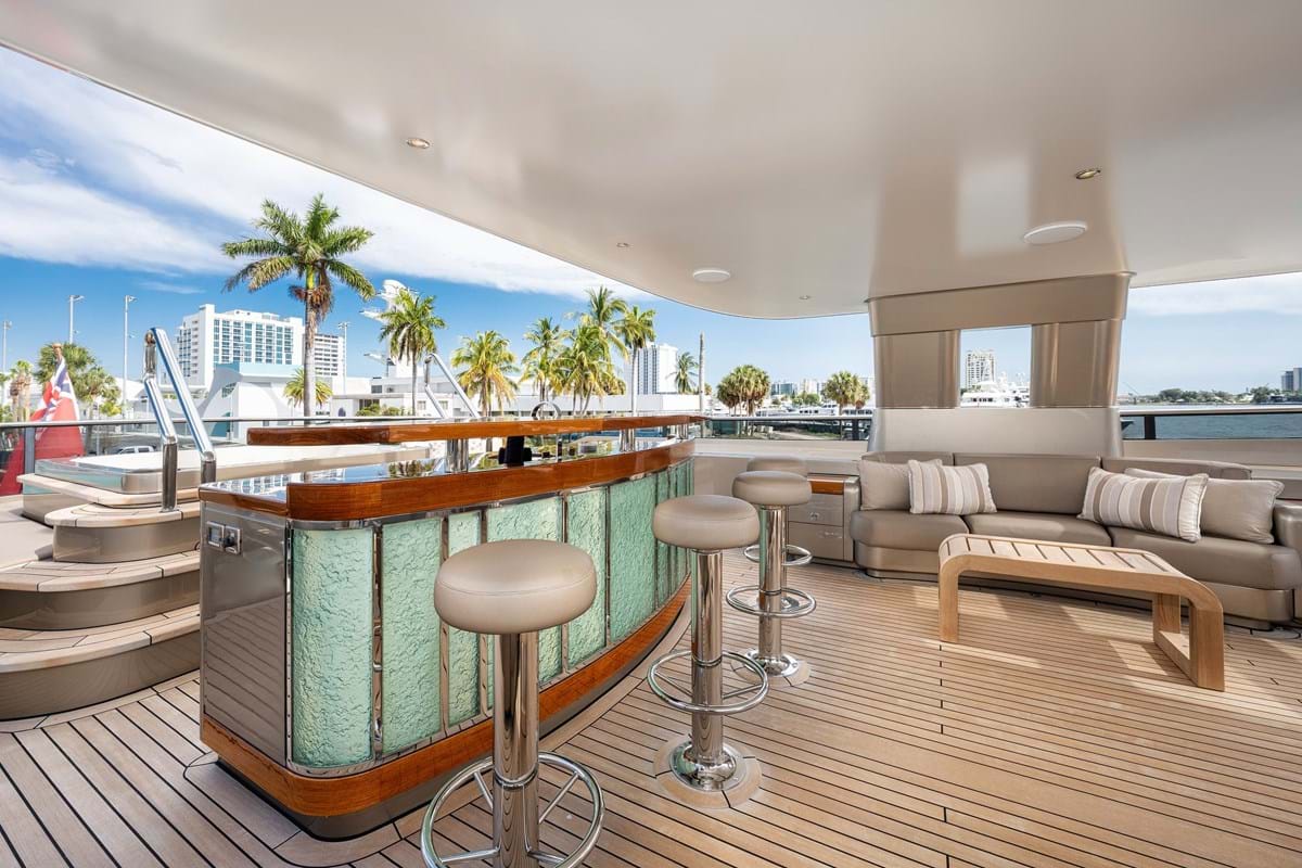 The master stateroom is situated forward of the saloon on the main deck and includes a separate office, walk-in wardrobe, extensive bookshelves and his and hers marble bathrooms.