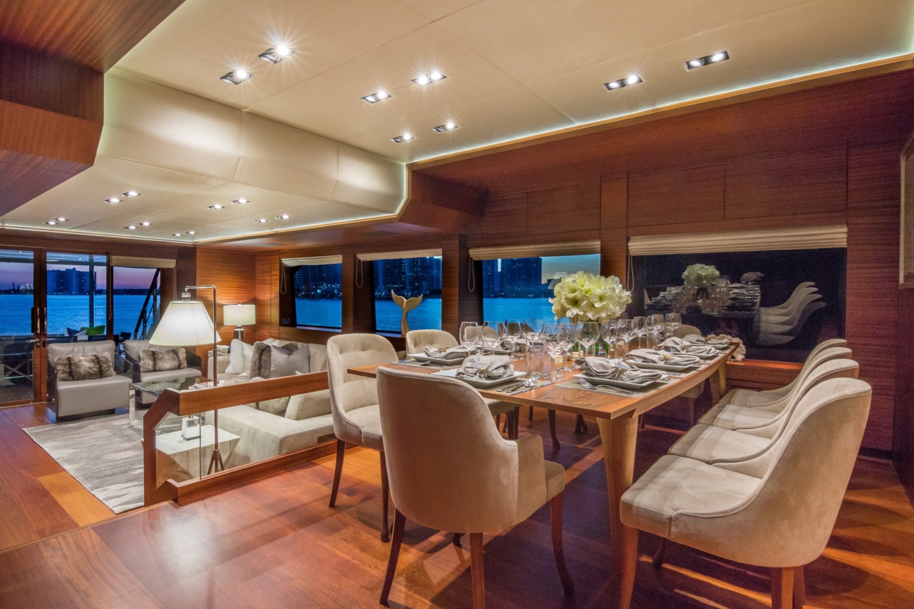 Launched in 2012, the 32.5m motor yacht MONI - Vintage 107 is a luxury cruiser constructed by the Turkish yard, Vicem Yachts. She boasts a deep V semi-displacement blue hull, built in cold moulded mahagony and epoxy as well as a white superstructure.