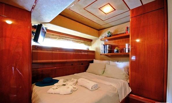 Motor yacht SPLENDIDO can accommodate up to 8 guests in 4 cabins. The full width Master cabin aft has a king size bed, with en suite shower and toilet. A further full width VIP cabin forward has a queen size bed, with en suite shower and toilet.