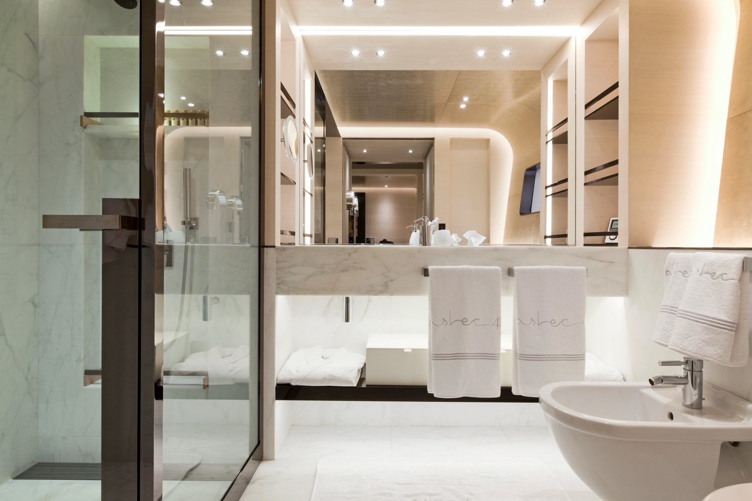 Her lovely interior boasts precious woods such as oak and ebony while having accent elements in carbon, black chrome, and gold leaf colours as well as textures.