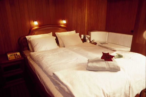 Gulet ED II is able to accommodate up to 8 charter guests in four cabins located on the lower deck. The owner master cabin is at the aft of yacht featuring a king size bed and accentuated wood and leather works that contrast with the natural light streaming in from the large windows.