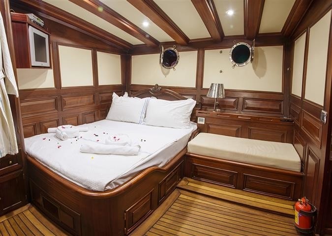 Six spacious and comfortable cabins aboard the superyacht Grande Mare can comfortably sleep 12 to 13 guests.