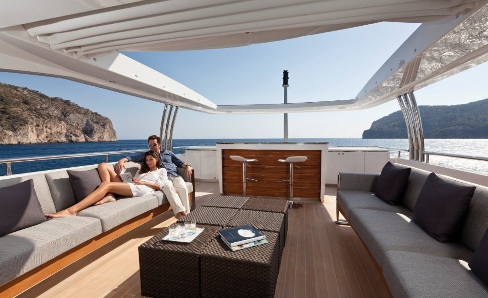 Twin MTU 12V diesel engines deliver the 40m superyacht a top speed of 20 knots.
