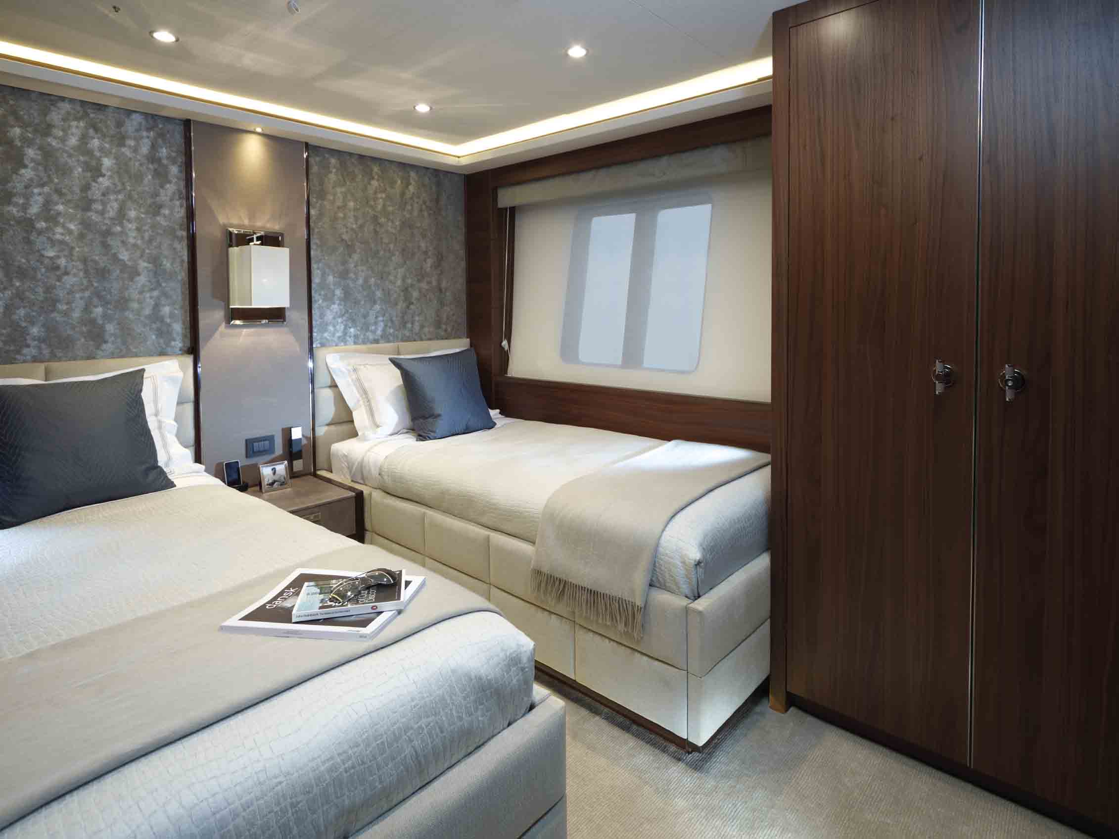 Twin MTU 12V diesel engines deliver the 40m superyacht a top speed of 20 knots.