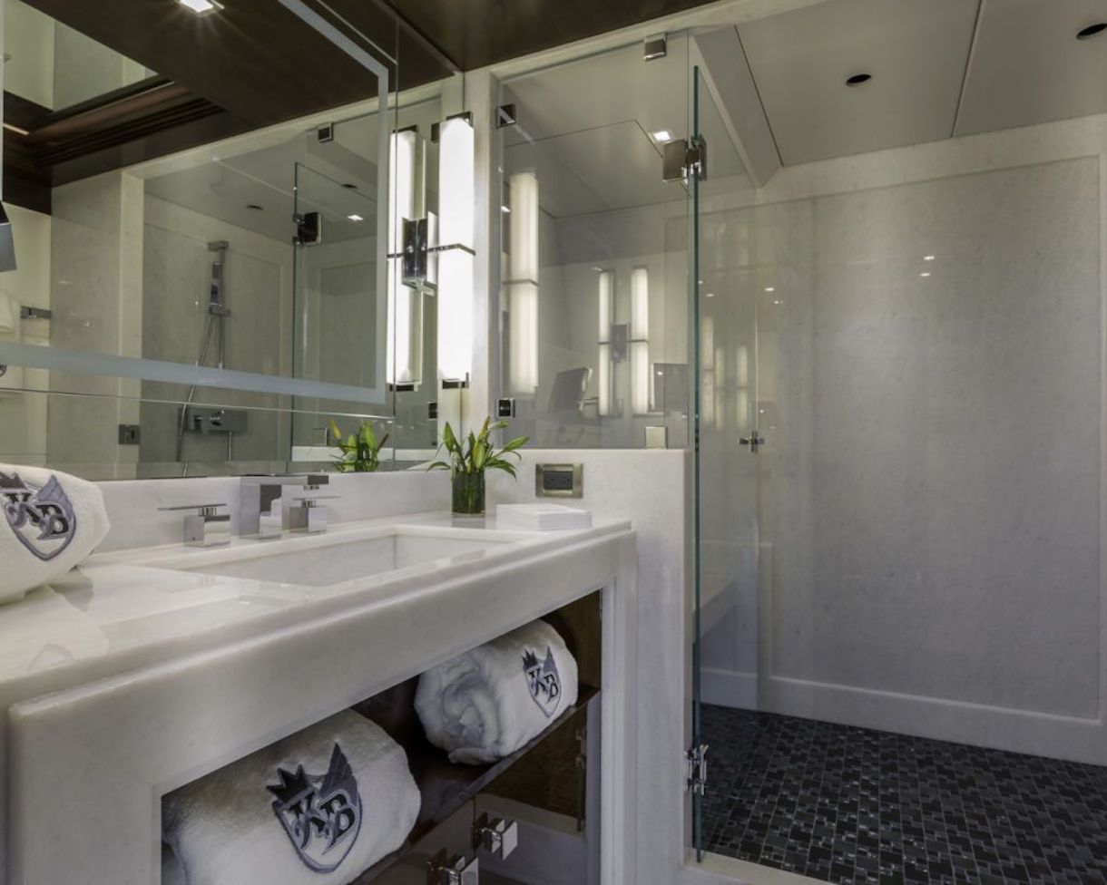 Views from the salon and sky lounge are limitless thanks to panoramic windows. Guest accommodation includes a full-beam master suite on the main deck, along with two double and two twin cabins with Pullmans on the lower deck.