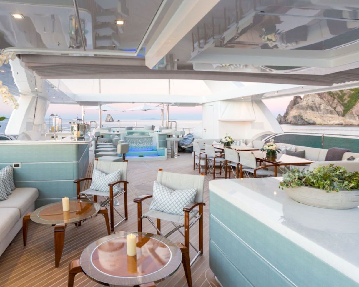 Guest accommodation includes a full-beam master suite on the main deck, along with two double and two twin cabins with Pullmans on the lower deck. She is managed by an impeccable crew of 9.