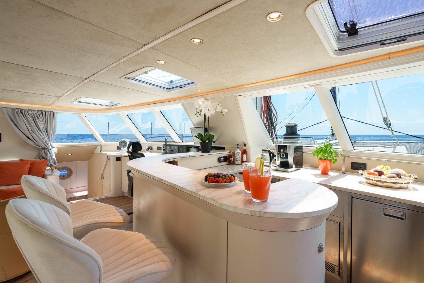 Catamaran MIROVIA (ex AZIZAM, Rose of Jericho, Sun Tenareze) provides yacht charters in Sicily, and Portofino.