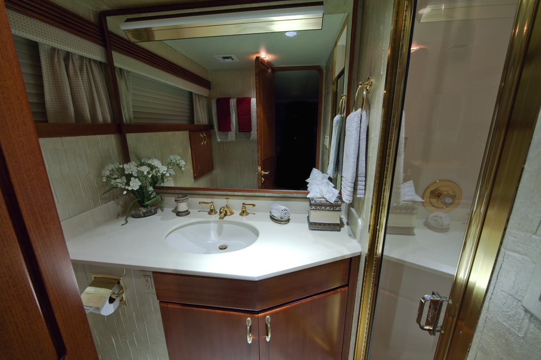 M/Y TWEENER can accommodate 8 guests in 4 cabins. The master cabin is amidships and offers a king size bed, walk in closet, settee and his and hers heads with a new large marble shower with bench.