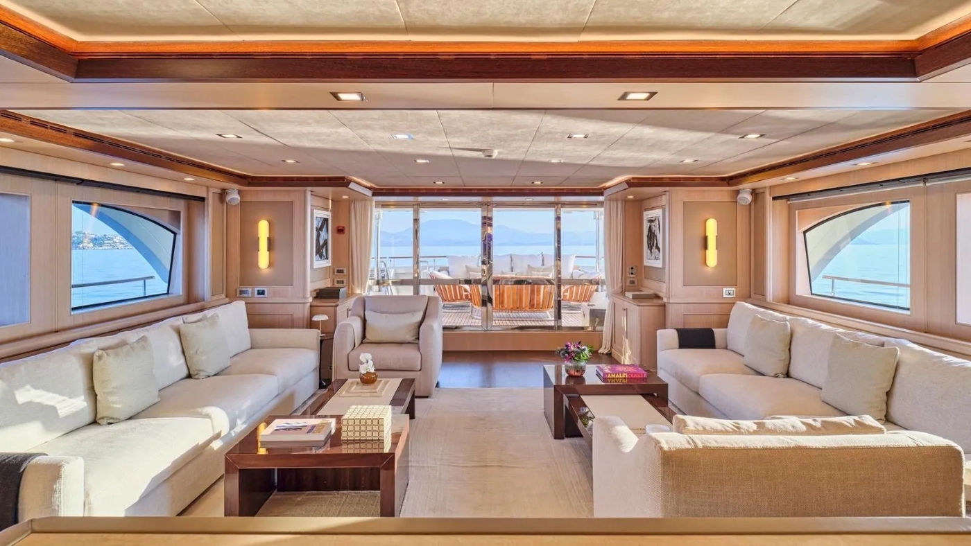 The yacht can sleep up to 11 guests in 5 cabins.