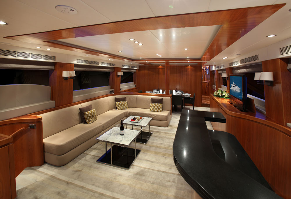 The salon features two comfortable sofas and opens out to the aft deck which offers alfresco dining. She boasts the latest Bose sound entertainment systems, TVs, CDs, a Spa Pool pool, a 4.5m Tender with 60hp outboard.