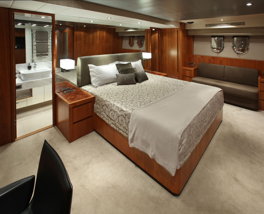 The Horizon 97 AQUARIUS is a wide body version of the 97 RPH with four large cabins on the lower deck with en suite heads, a huge country kitchen and galley, and a beautiful formal dining area. The salon features two comfortable sofas and opens out to the aft deck which offers alfresco dining.