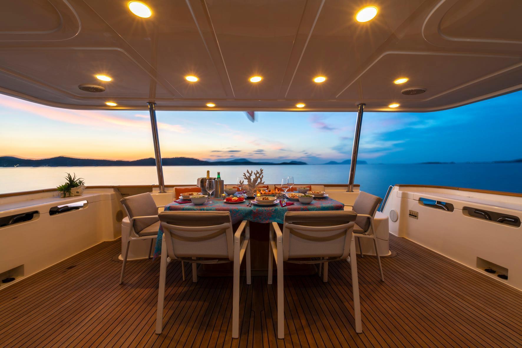 NOTABLE FEATURES OF EOLIA: Contemporary decor ~ On deck master stateroom ~ Alfresco dining ...
