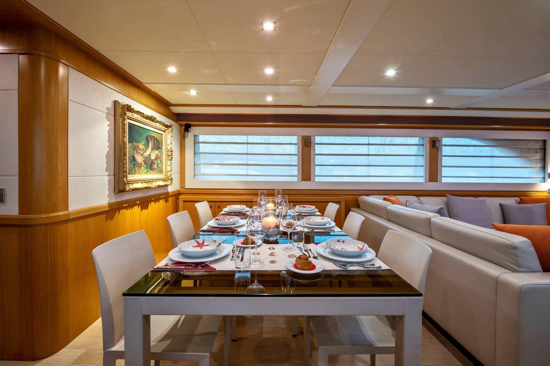 The yacht measures 26,22m (86’) and is great for larger family groups or friends as she can accommodate up to 12 guests in 5 cabins.