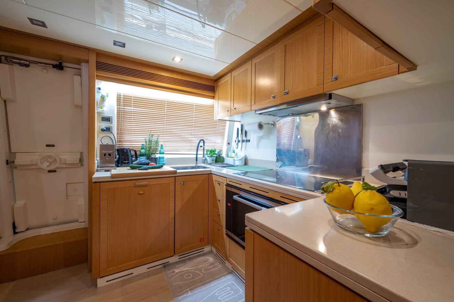 She features large windows enabling natural light to filter into the living area and to every cabin, natural woods and leathers, a sky lounge on the upper deck and a large cockpit furnished with an extendable table.