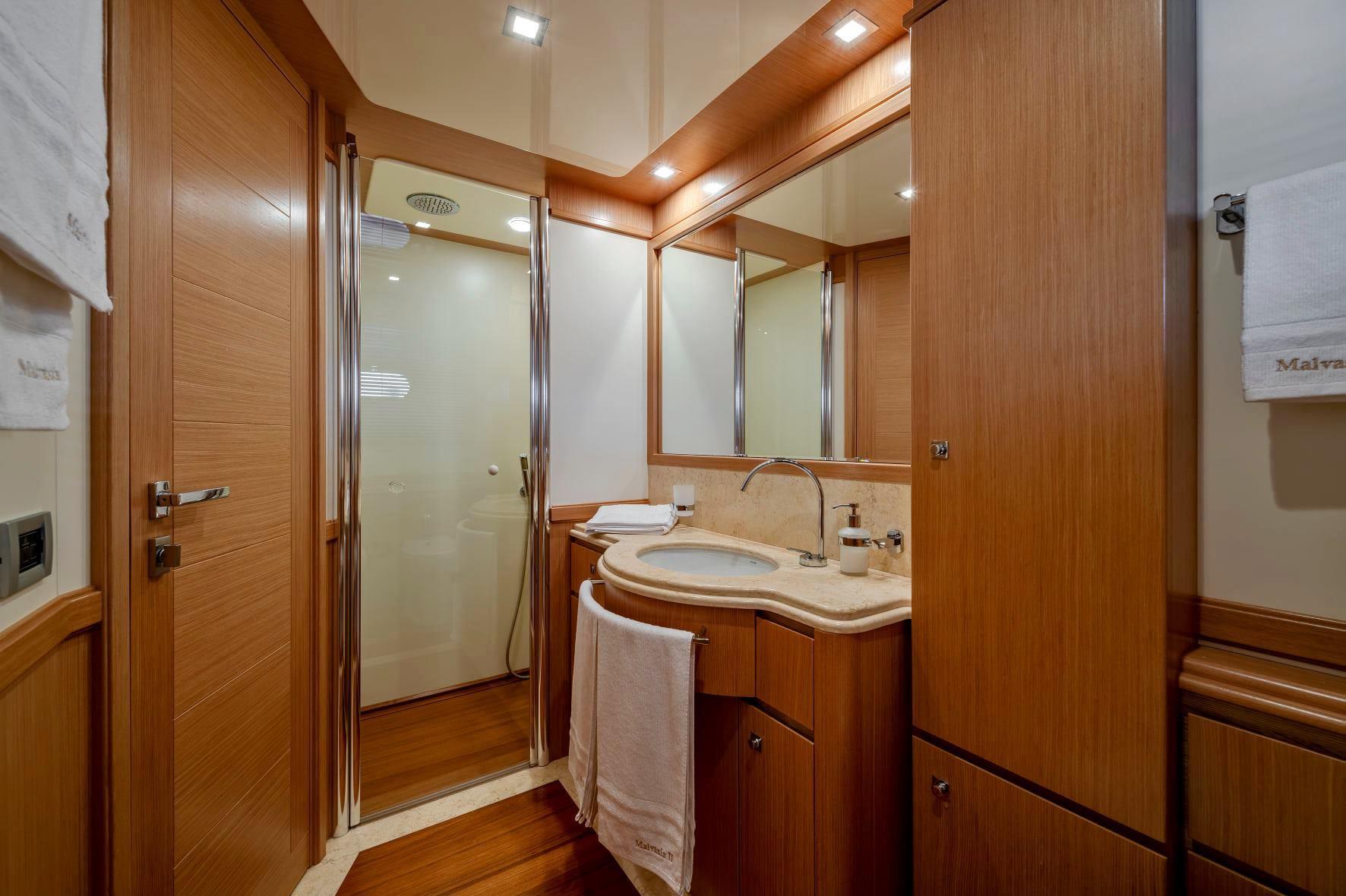 The Navetta 26 EOLIA is equipped with the latest generation instrumentation, including the new Gi8 control system, which makes it possible to easily monitor and manage controls, utilities, and alarms via a touch screen. The yacht also features efficient energy consumption and highly autonomous navigation.