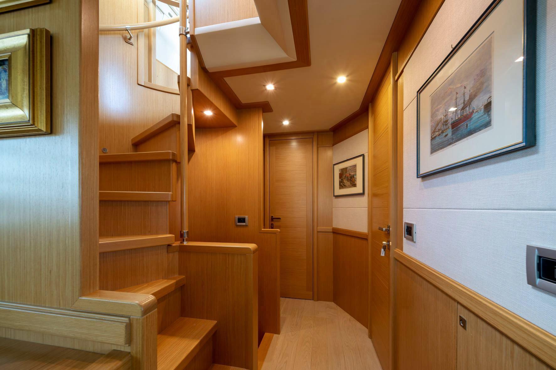 The Navetta 26 EOLIA is equipped with the latest generation instrumentation, including the new Gi8 control system, which makes it possible to easily monitor and manage controls, utilities, and alarms via a touch screen. The yacht also features efficient energy consumption and highly autonomous navigation.