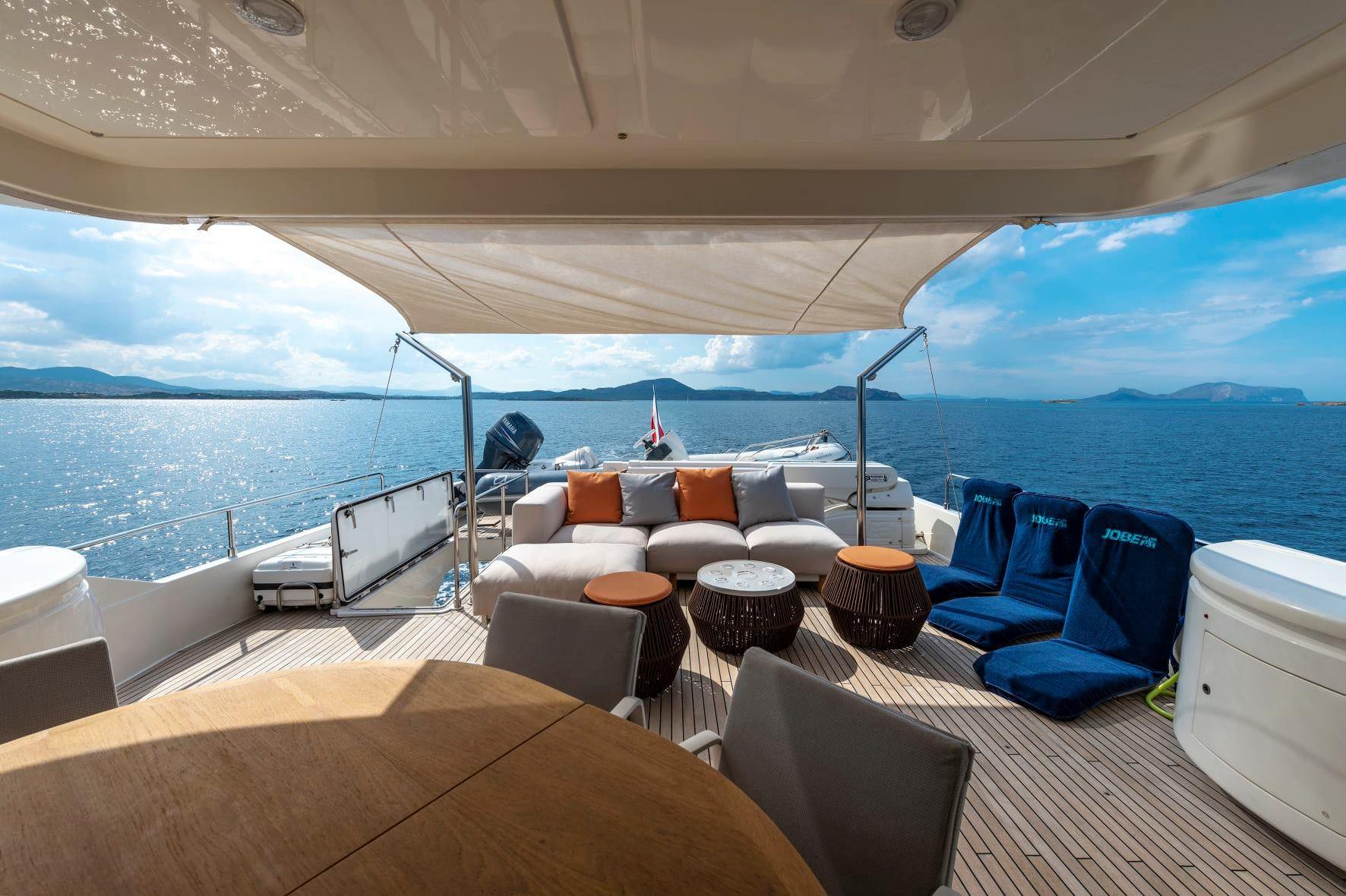 The yacht measures 26,22m (86’) and is great for larger family groups or friends as she can accommodate up to 12 guests in 5 cabins.