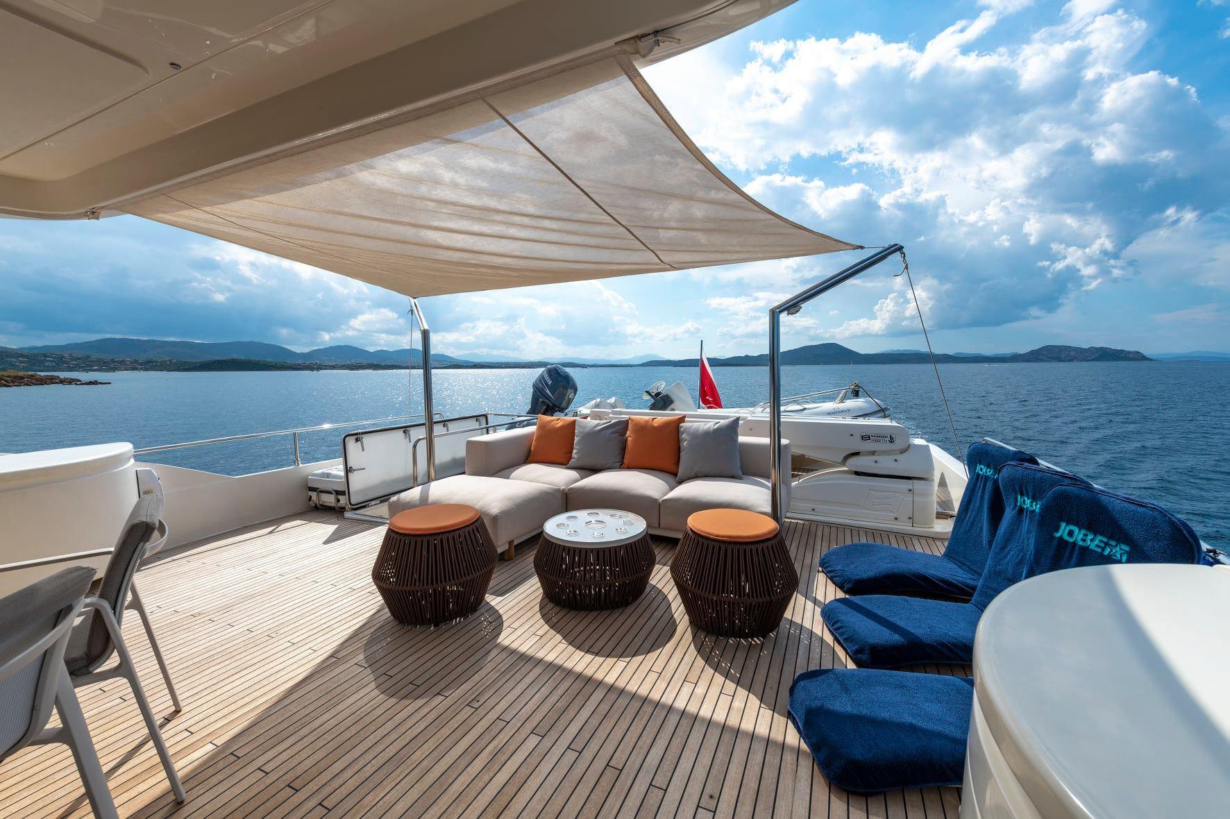 The yacht measures 26,22m (86’) and is great for larger family groups or friends as she can accommodate up to 12 guests in 5 cabins.