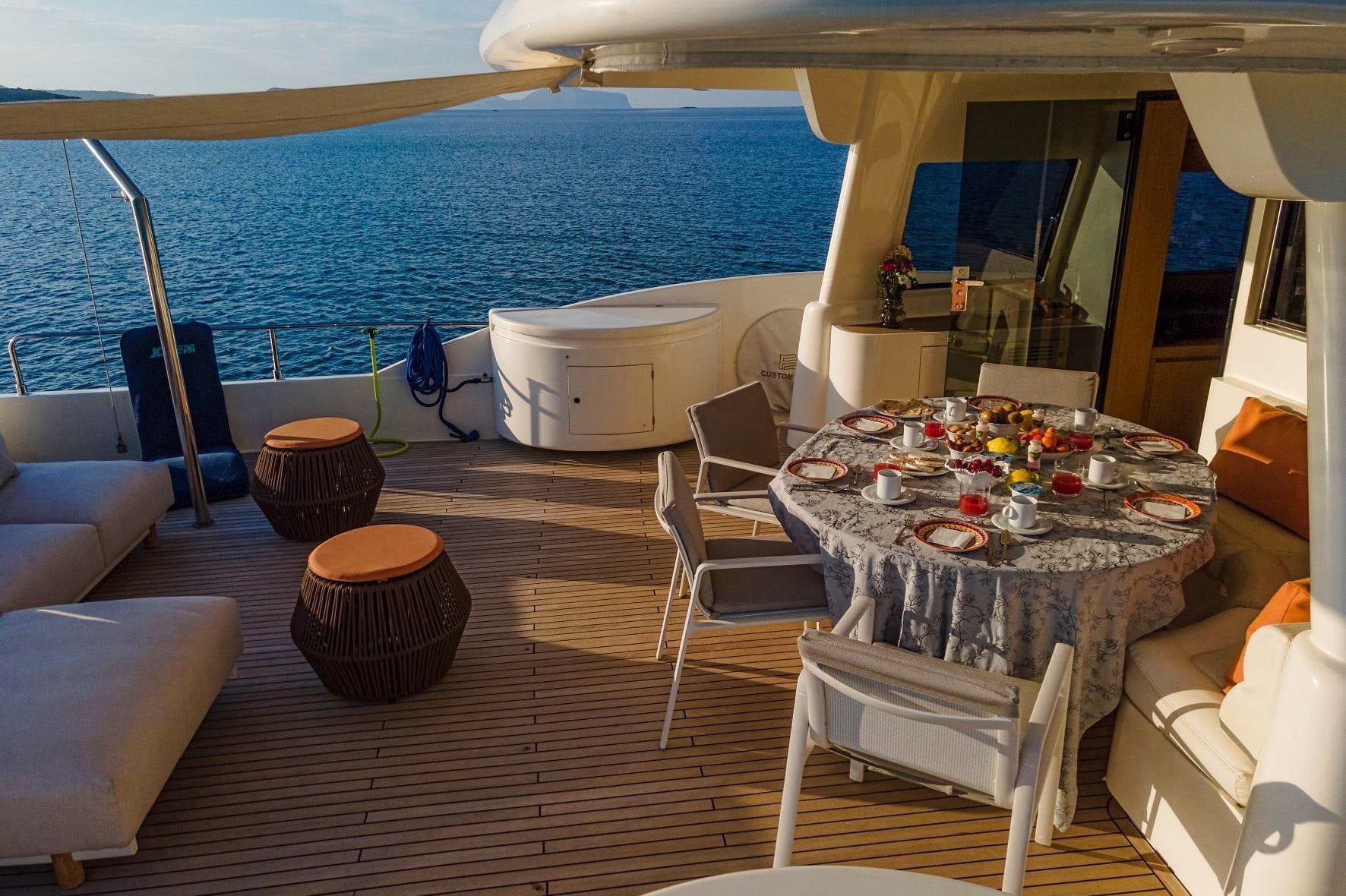 The yacht measures 26,22m (86’) and is great for larger family groups or friends as she can accommodate up to 12 guests in 5 cabins.