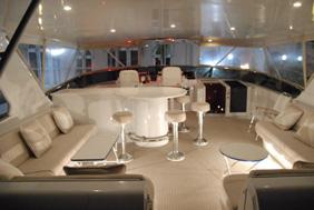 Above decks the fly bridge is voluminous, complete with a cocktail area, drinks bar and Spa Pool tub. In innovative Hatteras style the seating and bar are given a covered or non-covered option.