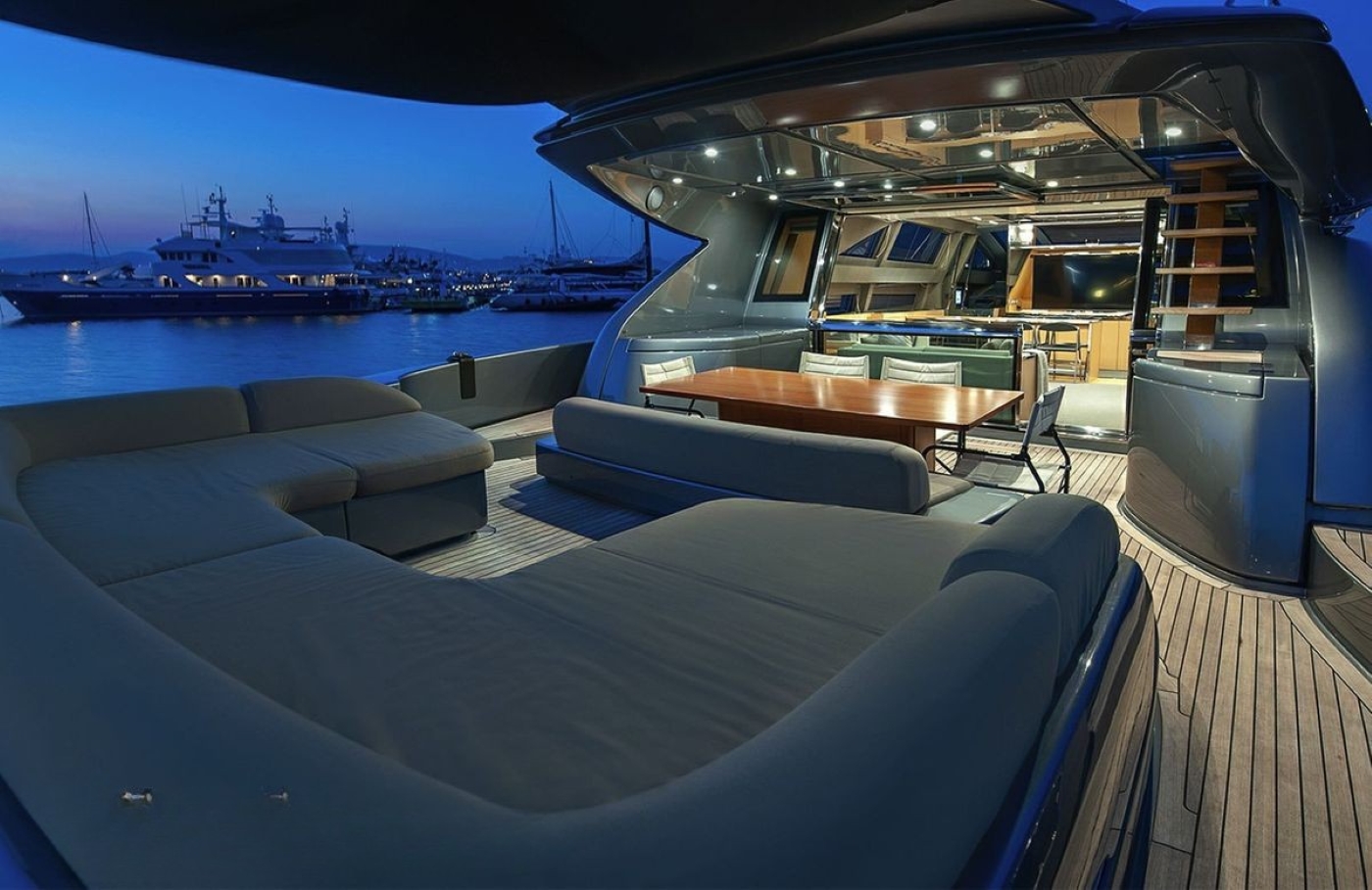 The yacht WHATEVER’s exterior is also spacious. Her aft deck offers a relaxed sunbathing/seating area as well as an alfresco dining area for up to 8 guests.