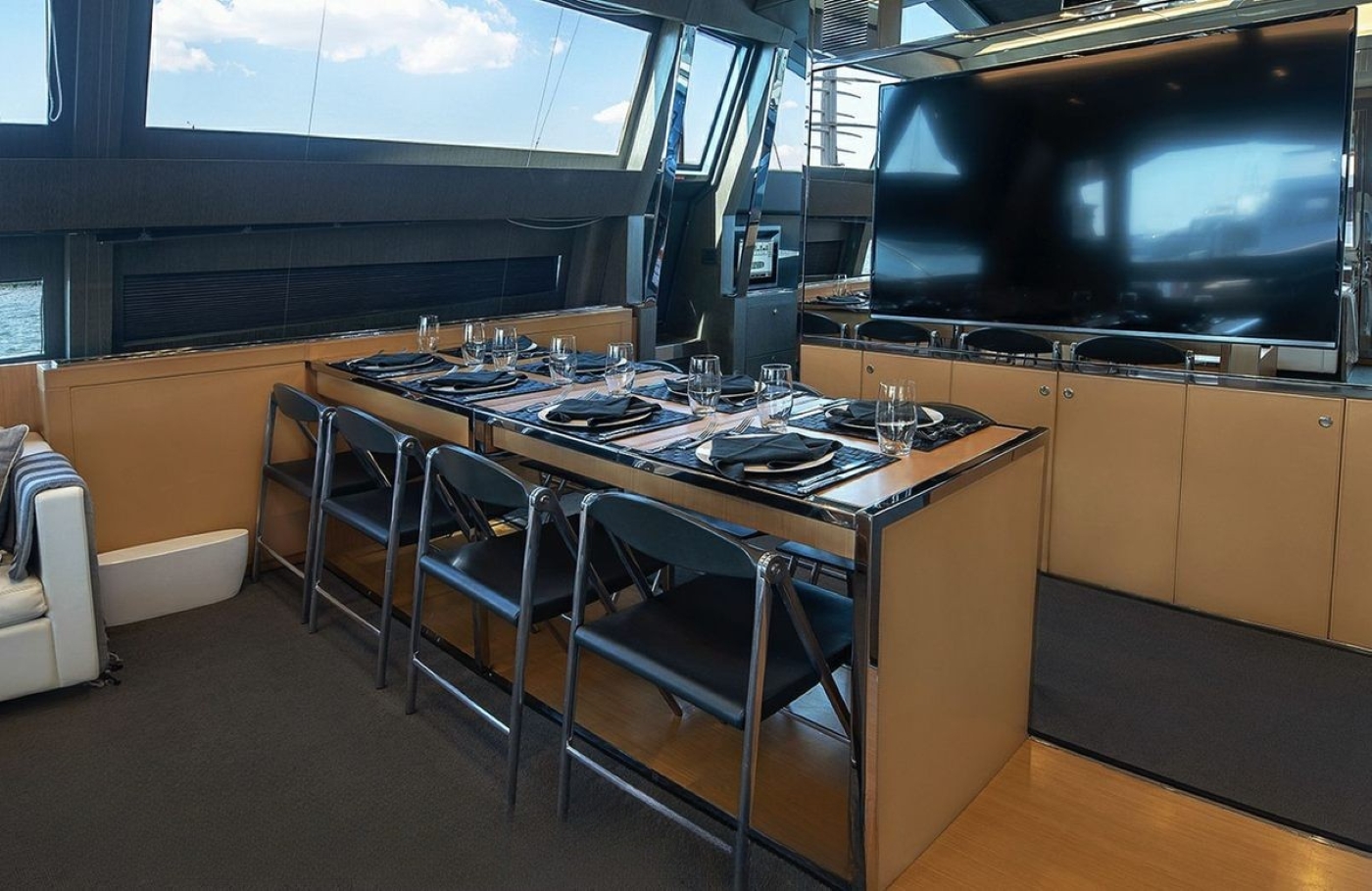 Her aft deck offers a relaxed sunbathing/seating area as well as an alfresco dining area for up to 8 guests. The superb design continues with a retractable glass window that opens the space between the aft deck and saloon.