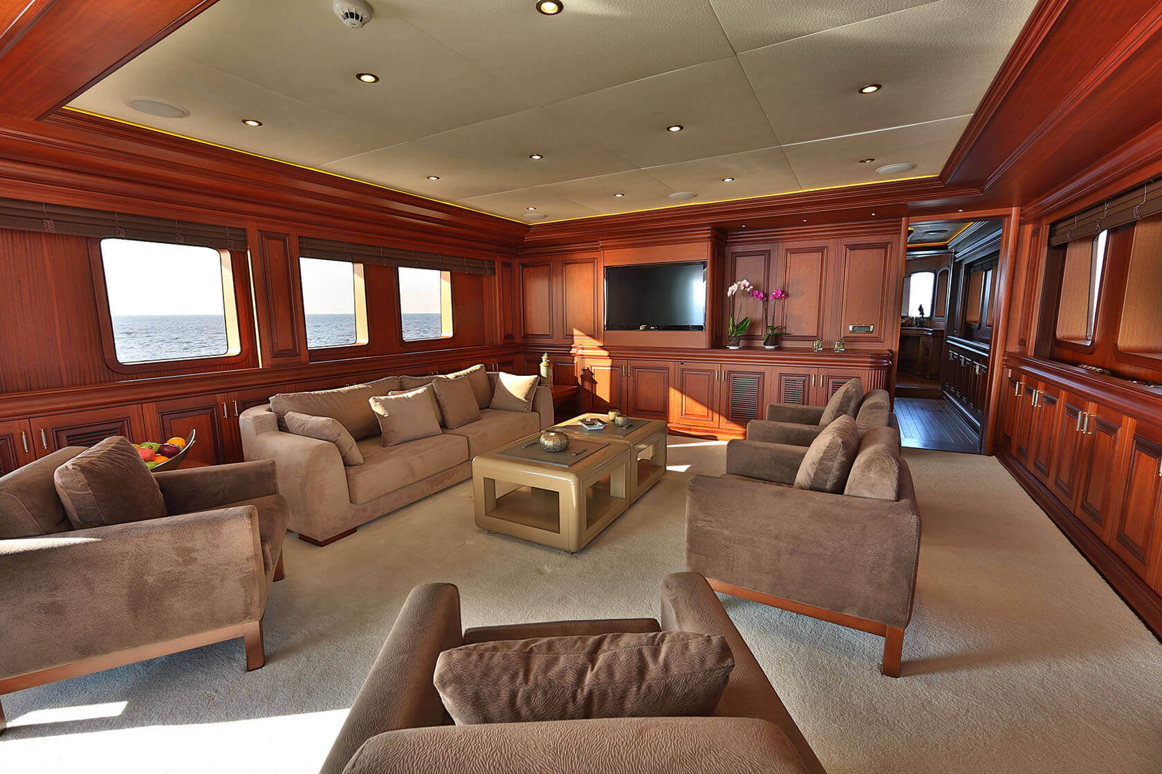 Her styling throughout is vintage inspired and antique, with warm woods and opulent interior features as well as smooth curves and sleek exterior lines. Her main deck features an elegant and large salon with a formal dining area.