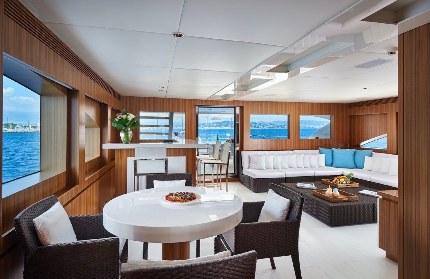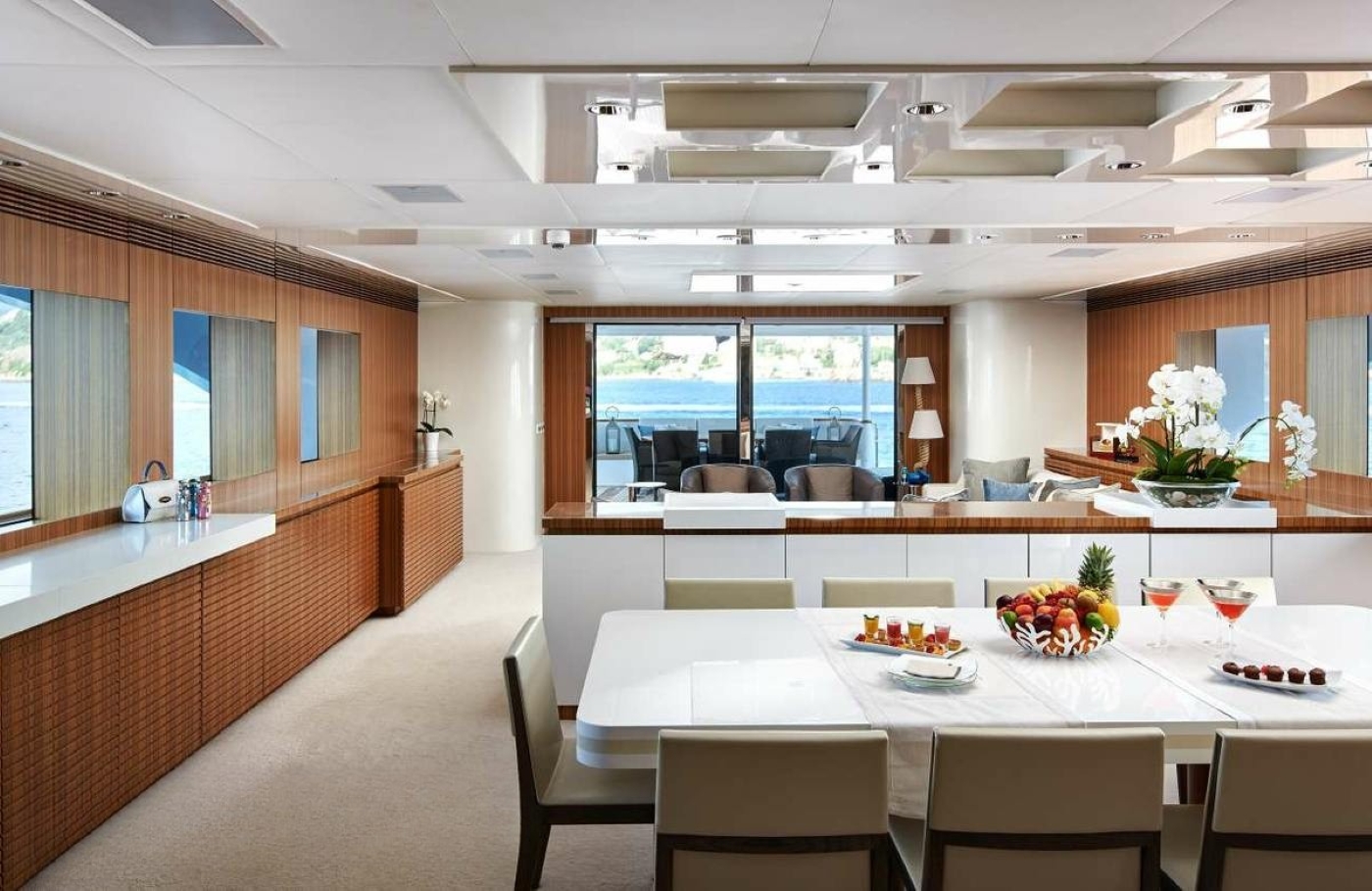 NOTABLE FEATURES: ~ Panoramic views ~ Jacuzzi ~ Alfresco & indoor dining ~ Wet-bar ~ Games table ~ Accommodation for 10 guests in 5 cabins ~ Zero-speed stabilisers ~ Water toys & tenders