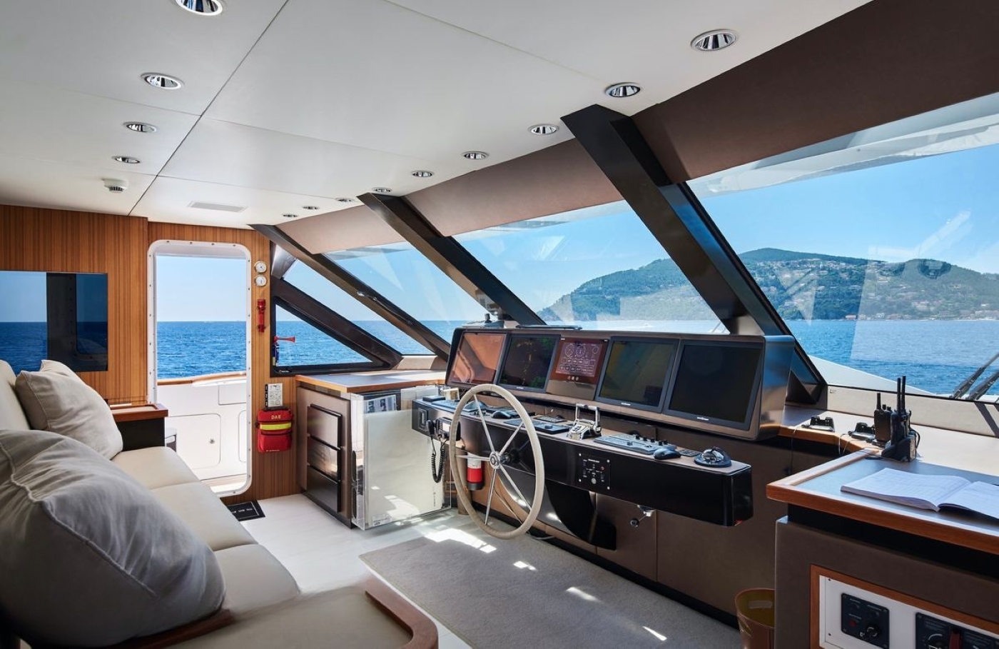 On the lower deck are two mirror image double cabins, offering queen size beds and two mirror image twin cabins, offering side by side single beds. All five cabins are finished to a high standard and feature the yachts minimalistic interior ambience, creating a soothing and relaxing retreat.