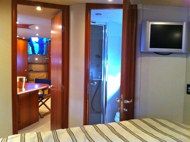 The Sunseeker Predator 61 motor yacht GIANPIER is able to sleep 4guests in 2 cabins. In the forepeak is the master stateroom with en suite head and shower and there is a pair of twin-berth cabins located aft of the salon.