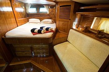 Sailing Yacht SINBADSAN offers comfortable accommodation in 4 en-suite cabins, there are 2 double guest cabins aft and 2 twin bunk cabins forward.