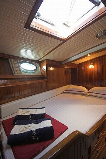 Sailing Yacht SINBADSAN offers comfortable accommodation in 4 en-suite cabins, there are 2 double guest cabins aft and 2 twin bunk cabins forward.