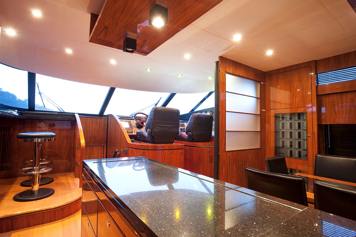 The XKE yachts dining room and galley are integrated with the saloon to create a light, sociable area.