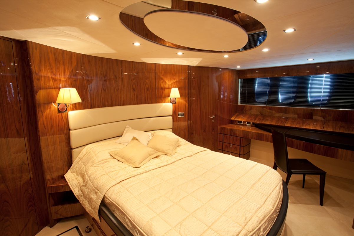 The luxury Squadron 78 Custom yacht XKE is able to accommodate 8 guests in a master cabin, a VIP cabin and 2 twin cabins, all with ensuite facilities.