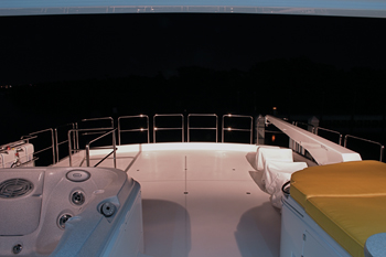 Above decks the partially shaded fly bridge is well equipped with a lunch table, L shaped settee, drinks bar, BBQ, Spa Pool and sunpads.