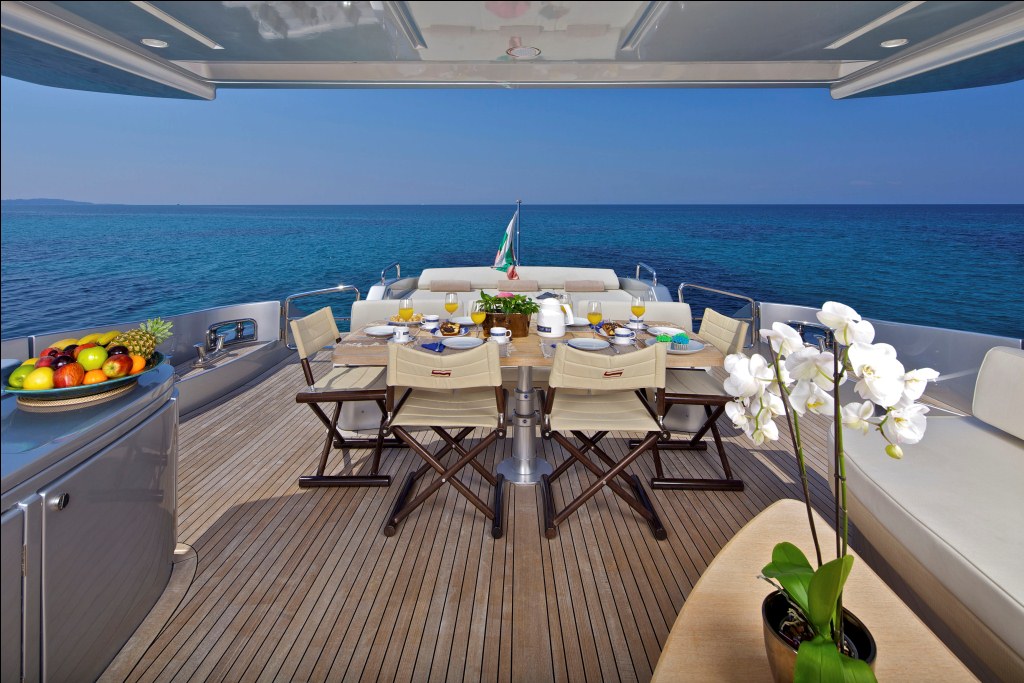 NOTABLE FEATURES: Sleek hull design ~ Modern decor ~ Excellent outdoor space ~ Impressive speeds ~ Wi-fi