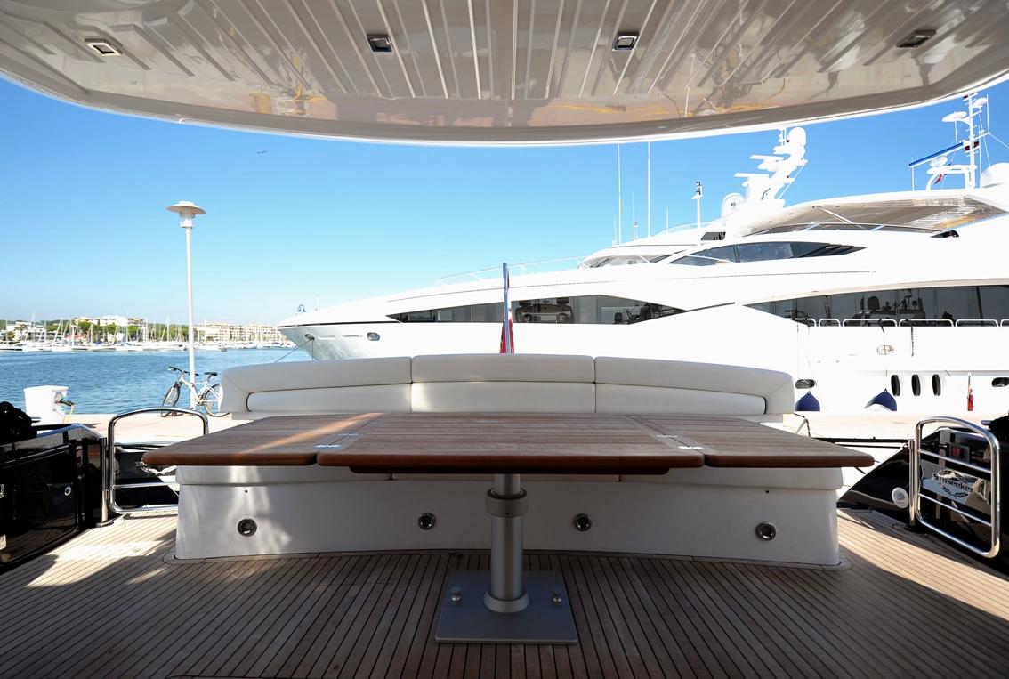 Charter Yacht SEFERINO offers guests plenty of outdoors space; the aft deck is shaded with an alfresco dining option, which leads onto a large swim platform for easy water access.