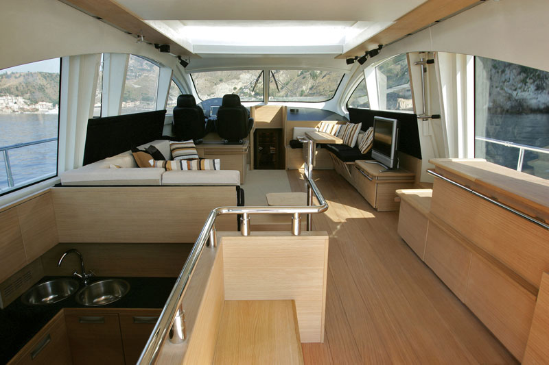 t via fly ladder, Hydraulic steering electrically powered, Radar, Chartplotter, Automatic pilot with interface, VHF radio and 5 kw generator.