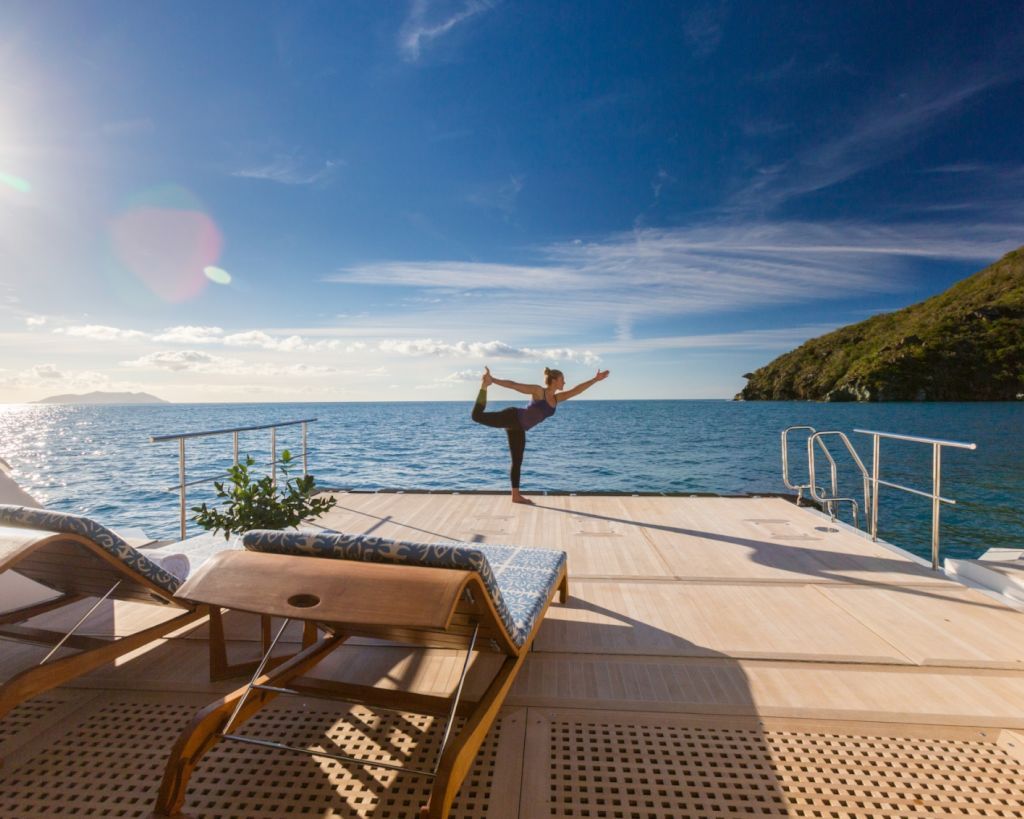 On the main deck, the formal dining and salon are laid in an open plan and are surrounded by panoramic windows.