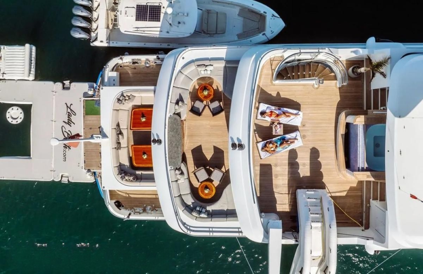 The yacht's exterior space is well-appointed over three levels.