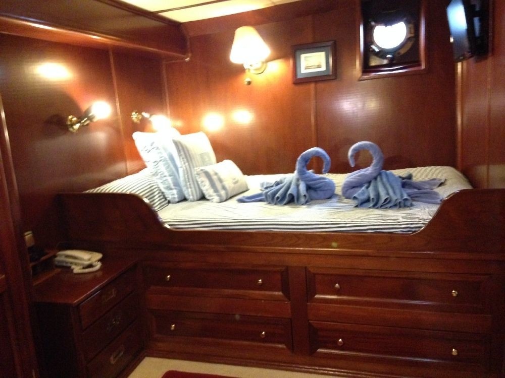 She is able to accommodate up to 10 guests in 5 double cabins (+1) with en suite bathrooms.