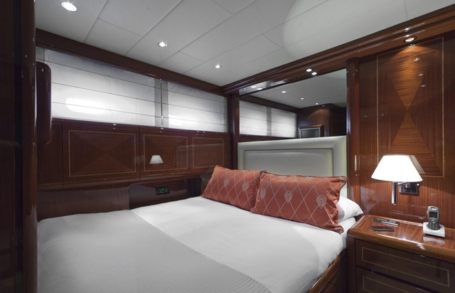The Mangusta 72 OUTSIDE EDGE IV is able to accommodate up to 6 charter guests in 3 well-appointed cabins all offering ensuite facilities.