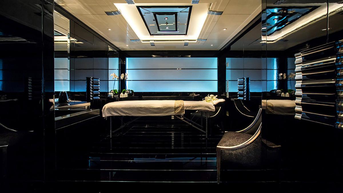 The list of toys includes a Boesch 7.5m classic mahogany fully customized speed boat, 16 sets diving equipment, a 7.5m Novurania tender fully customized semi rigid with diesel inboard dive tender and a huge sun deck which hosts the golf machine and the Spa Pool pool.