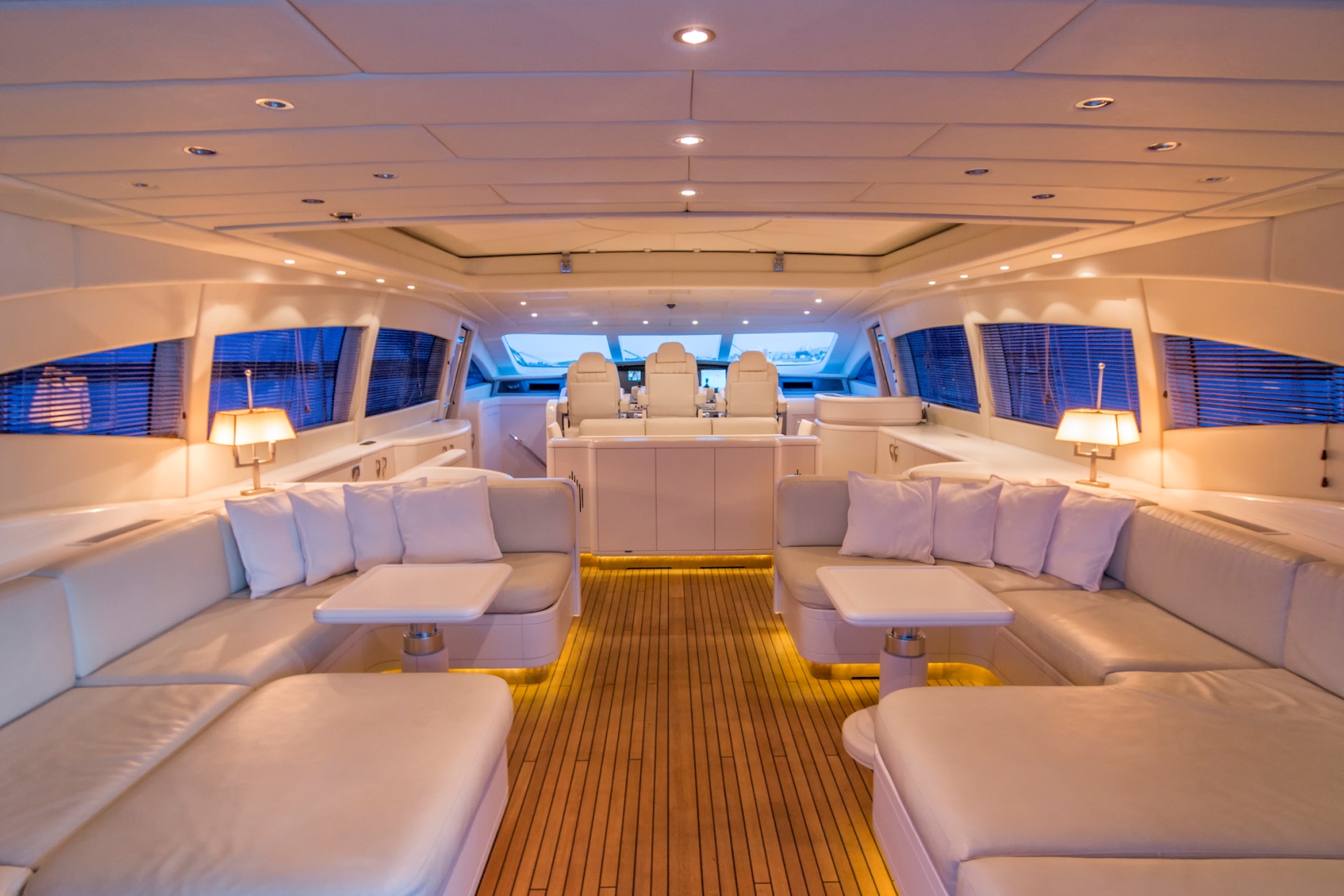 Notable Features for Le Magnifique: Performance hull design ~ Upper salon offering 360 degree views and sunroof ~ Apple TV in all guest cabins ~ Expansive exterior living ~ Great assortment of water toys