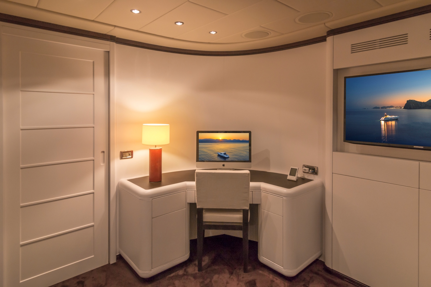 Notable Features for Le Magnifique: Performance hull design ~ Upper salon offering 360 degree views and sunroof ~ Apple TV in all guest cabins ~ Expansive exterior living ~ Great assortment of water toys