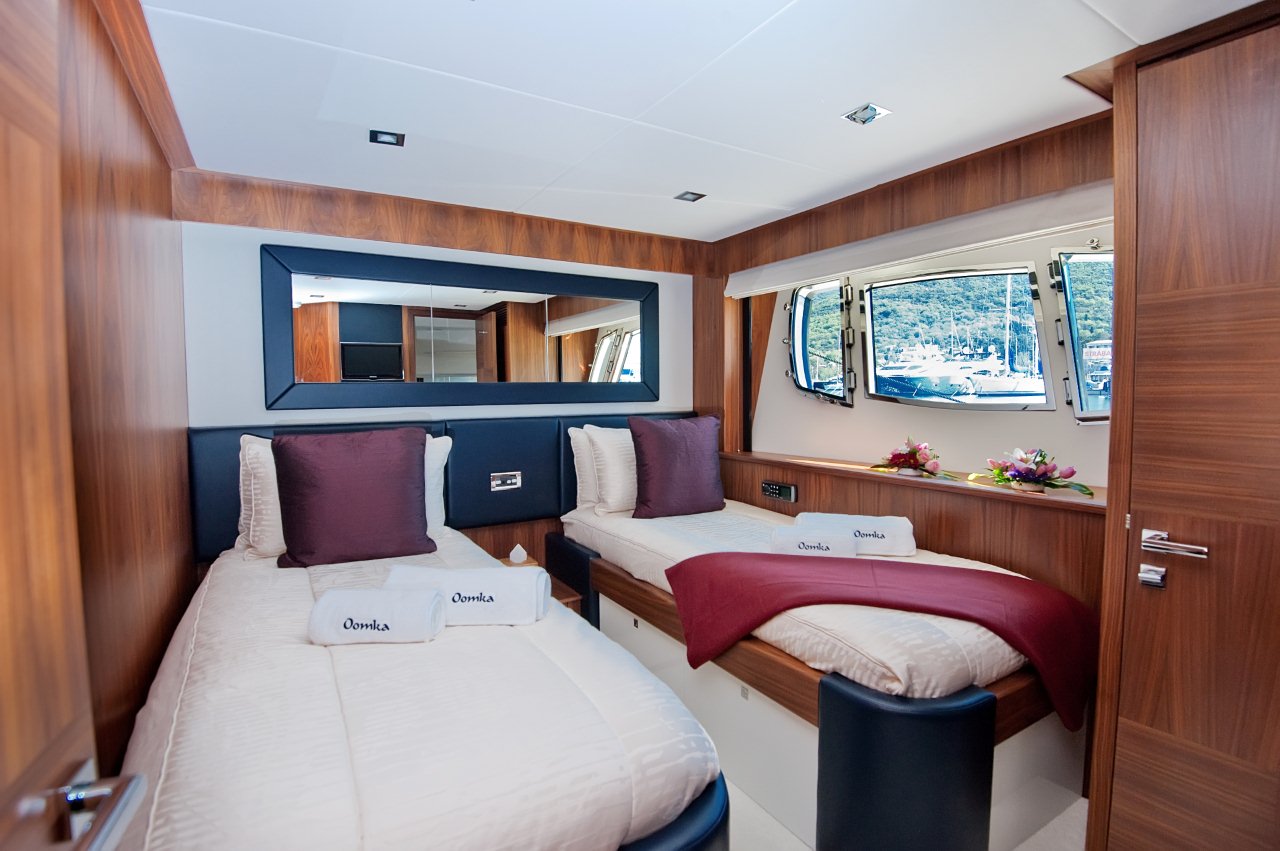 This Sunseeker 88 motor yacht OOMKA has a spacious interior comprising of 4 guest cabins sleeping a total of 8 charter guests.