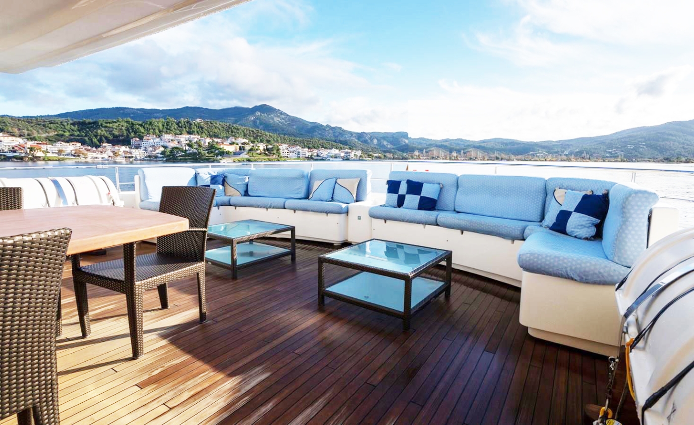 Charter yacht ESCAPE has excellent deck areas for dining and lounging, the aft deck is shaded ...
