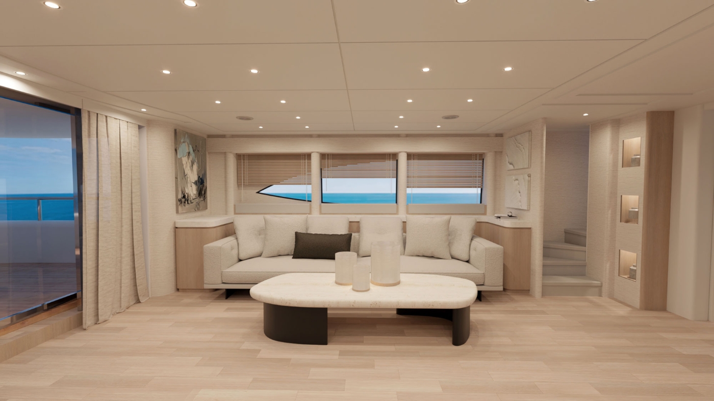 Motor yacht ESCAPE has an elegant and inviting interior, the salon features light woods, quality neutral soft furnishings consisting of an L shaped sofa, 2 lounge chairs, a large ottoman and glass coffee table, forward of the salon the formal dining table is solid wood with a high gloss finish accompanied by classy traditional style chairs.